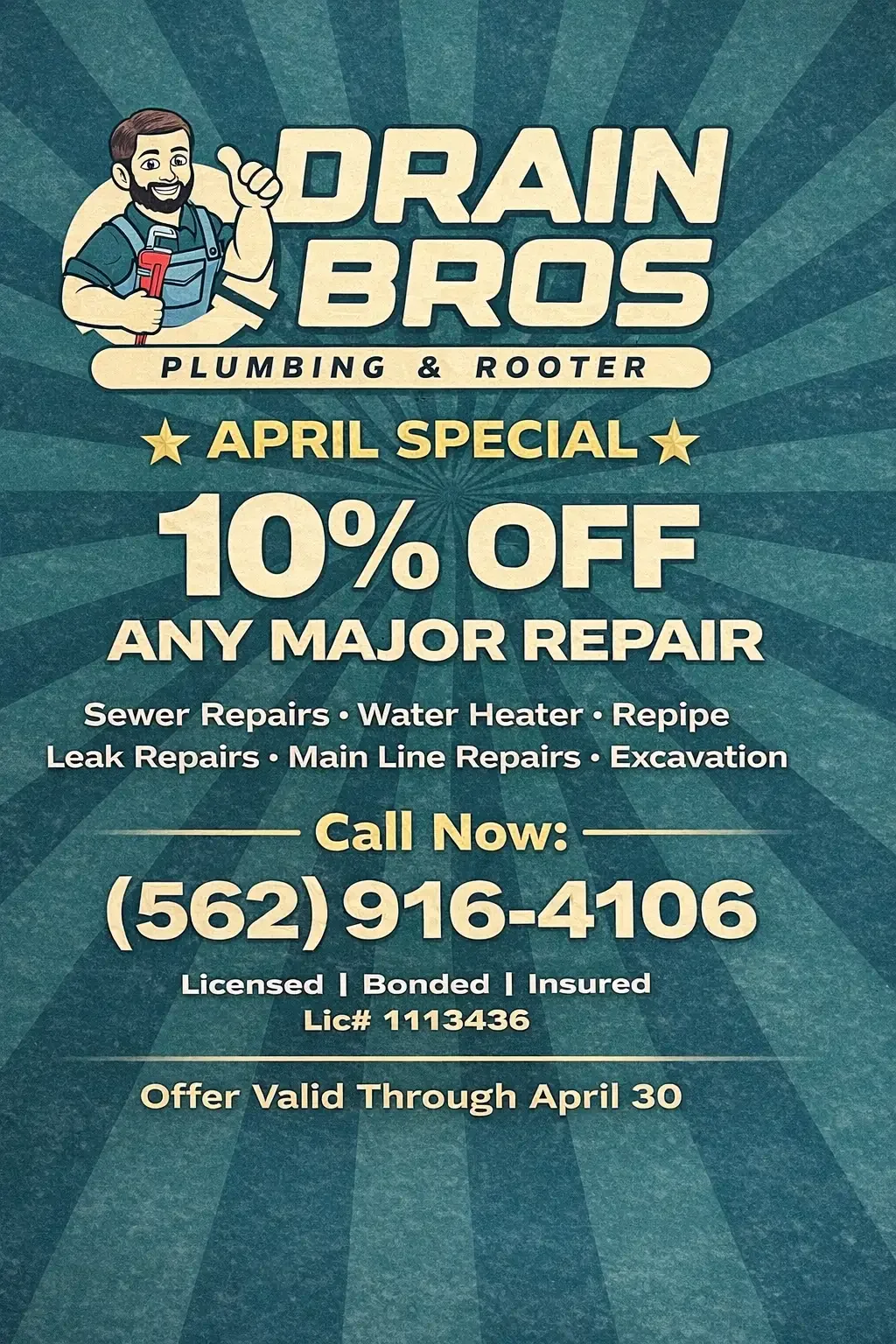 Drain Bros Plumbing & Rooter is a licensed, bonded, and insured family-owned plumbing company proudly serving Norwalk, Los Angeles County, and Orange County. We specialize in drain cleaning, sewer line repair, hydro jetting, sewer camera inspections, and water heater installation.